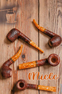 Miele bedeutet Honig. Und das ist bei diesem Modell unübersehbar.Der Rauchraum dieser Pfeife zeichnet sich durch angenehme Honigaromen aus, die beim Rauchen eine ganz leichte Note der Süsse entwickeln. Auch optisch erinnert der Stiel der Pfeife im rustikalen Design ein wenig an das Muster eines Bienenstocks. Passend zum Aussehen enthält die Themenbox einen Pfeifenstopfer in Form eines Honiglöffels.