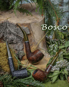 Die Bosco-Serie ist in glatter brauner und rustikaler schwarzer Ausführung erhältlich und wird in 6 verschiedenen Modellen angeboten. Die Pfeife hat einen dunkelgrünen Stiel mit helleren Schattierungen, die an die Farben des Waldes erinnern. Ein dünner Aluminiumring verleiht der Pfeife einen eleganten Touch.
