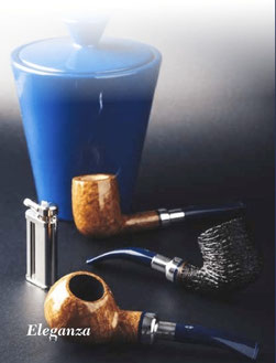 Die Savinelli Eleganza mit ihrem dunkelblauen Mundstück passt so perfekt zum hellen oder dunkel rustizierten Pfeifenkopf und zur Silberarbeit am Holm, dass man sich fragt, wieso es nicht schon längst einmal ausprobiert wurde.
