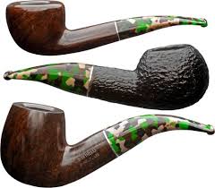 Die Kreativität von Savinelli bei neuen Serien , wird bei der Serie "Camouflage" besonders deutlich. Denn das 9mm- Acrylmundstück ist in sehr individuellen Grün-, Sand-, Braun- und Schwarztönen gehalten, die ein interessantes "Tarnmuster" ergeben.