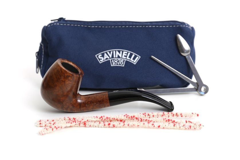 Mit der One Starter Kit-Serie bietet Savinelli angehenden Pfeifenrauchern alles, was sie zum Pfeiferauchen benötigen. An erster Stelle steht natürlich die Pfeife selbst. Dieses Exemplar hat eine glatte, schokoladenbraune Oberfläche. Das Set enthält außerdem ein tschechisches Pfeifenwerkzeug – komplett mit Stopfer, Pfeifenpicker und Pfeifenlöffel – Pfeifenreiniger und ein praktisches Reiseetui. Jetzt müssen Sie nur noch eine Tabakmischung finden.